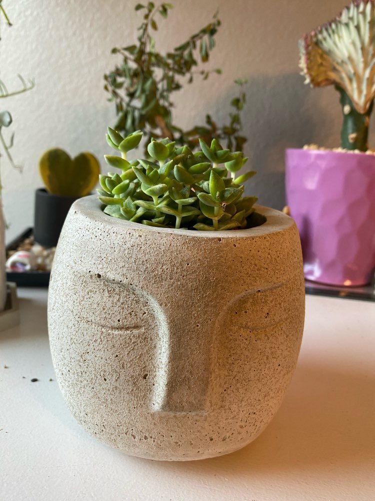 Magníficos moldes de silicona para crear maceteros de cemento con la forma de un rostro humano.